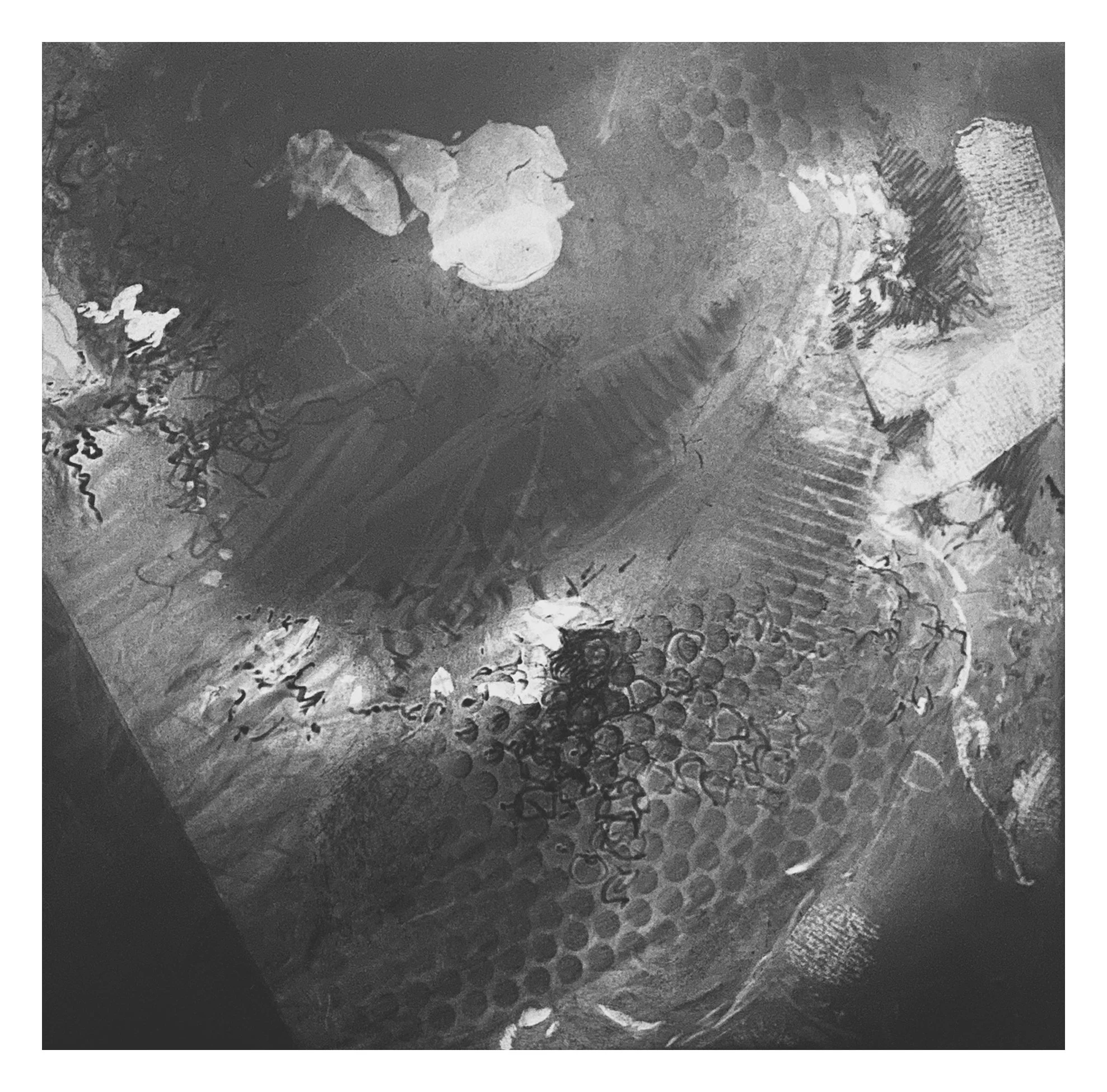 I love utilizing a diverse collection of mark-making implements when working with graphite. My favorite tool is an old brush I salvaged years ago from my Dad’s basement workspace. Tucked away in the studio, it recently resurfaced to become this remarkable applicator for the powdered medium itself. And with repetitive layering built into my genetic makeup, the method was perfect for producing an intriguing dimensional ground for whatever else might materialize.